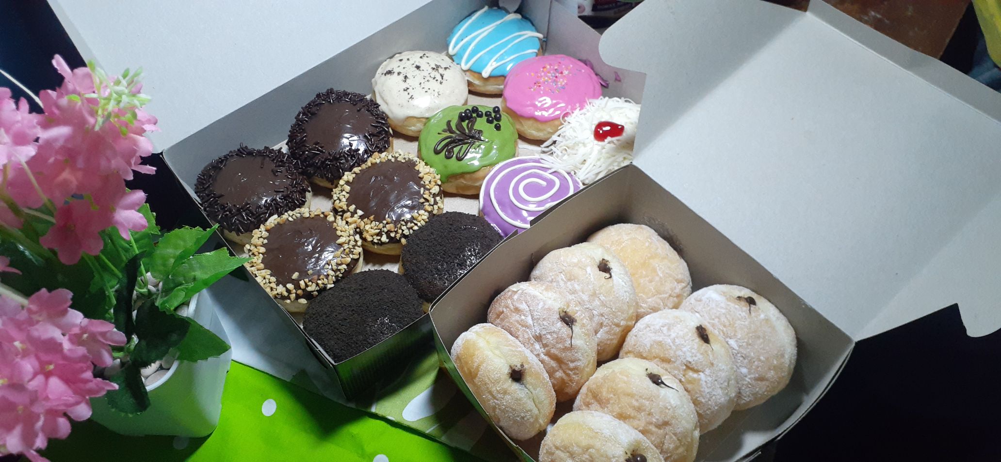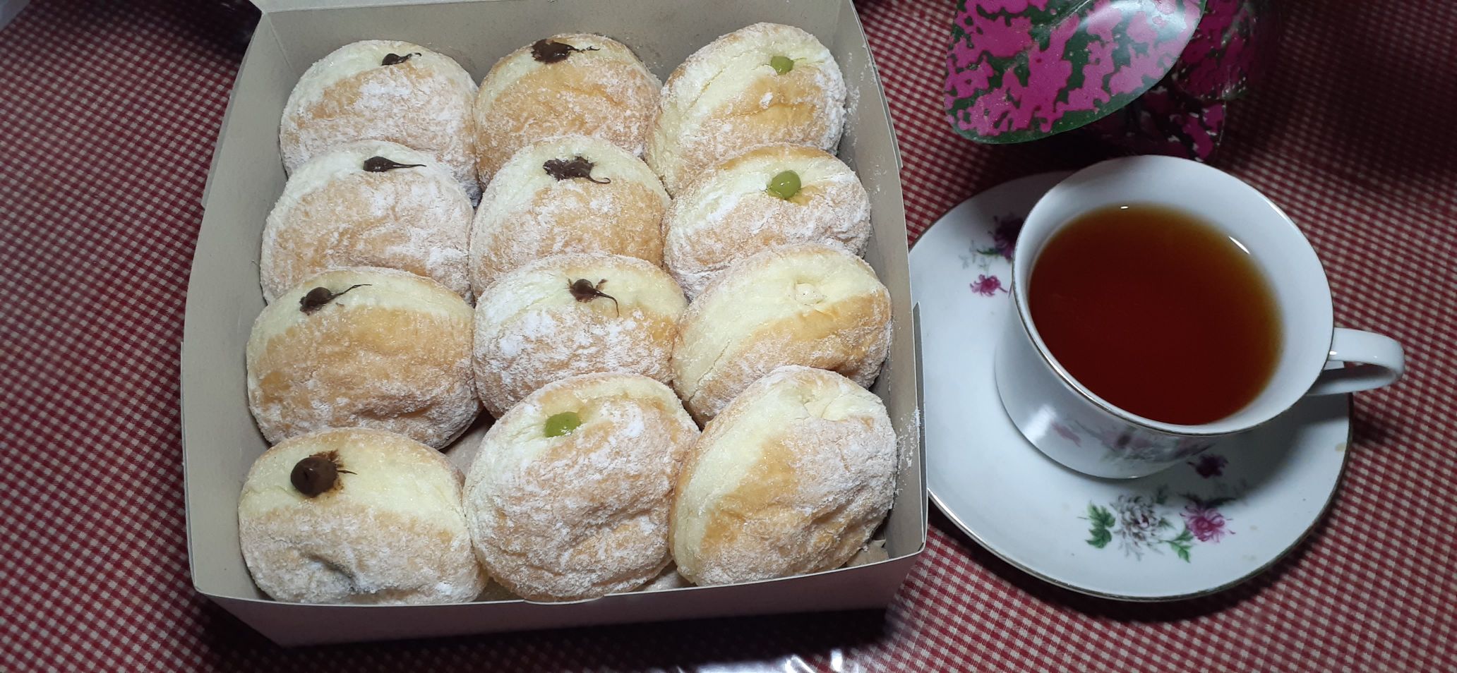 Bomboloni rasa coklat, tiramisu, green tea @2500. rasa selai nanas, bluebery, strawbery @1500